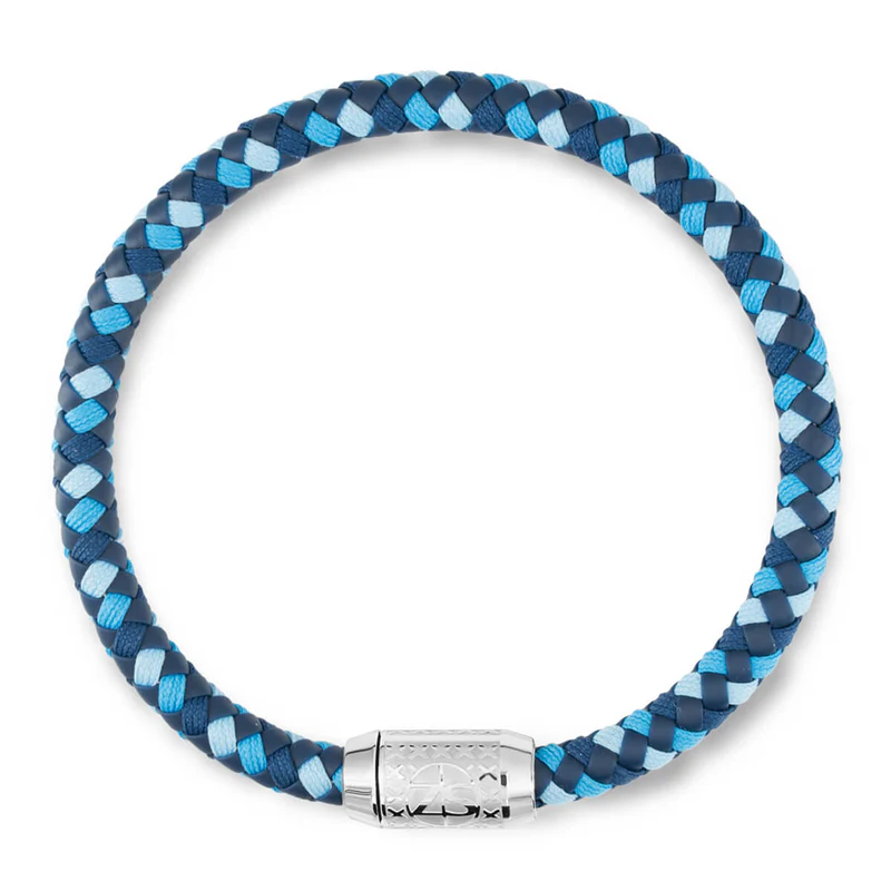 A COSMOPOLITAN 6S Wind karkötő teljes mértékben a mediterrán hangulatot sugározza: valódi olasz bőr, kézzel készített, a „Le Grand Bleu” különböző árnyalatainak gondosan összefonott keverékével, merész 6 mm átmérőjű szíjjal. A ZS Cosmopolitan mintás grafikus zár tovább fokozza ezt a stílusos, kifinomult dizájnt, biztosítva a jó illeszkedést a mágnes és a csavaros rendszer kombinációjának köszönhetően.