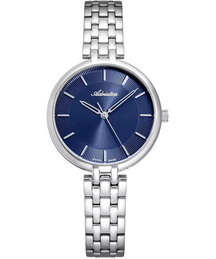 Az Adriatica Classic A3763.5115Q egy elegáns, ezüstszínű női karóra kontrasztos, tengerészkék számlappal – mely a napfényben gyönyörűen csillog, lágy szaténfényű. Ehhez jönnek hozzá a számlapon látható díszítések, amelyek érdekes dizájnt kölcsönöznek az órának. A sérülések elleni védelemről az ásványi üveg gondoskodik. A megfelelő és pontos működésért a Ronda 763 svájci kvarcmű felel. A termék vízállósága 3 ATM, ami védelmet nyújt a vízzel való véletlen érintkezés során.