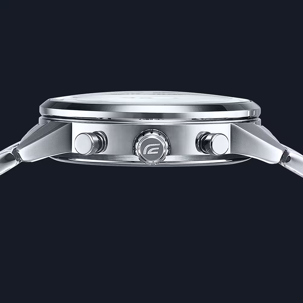 Ez az EDIFICE kronográf, amelyet egy klasszikus sportkocsi domború üvegmérői ihlettek, egy átmenetes számlap időtlen megjelenésével hódít. Az olyan részletek, mint a domború óraüveg, a keskeny lünetta, a rozsdamentes acél tok és a nyomógombok időtálló stílussal teszik teljessé a dizájnt.