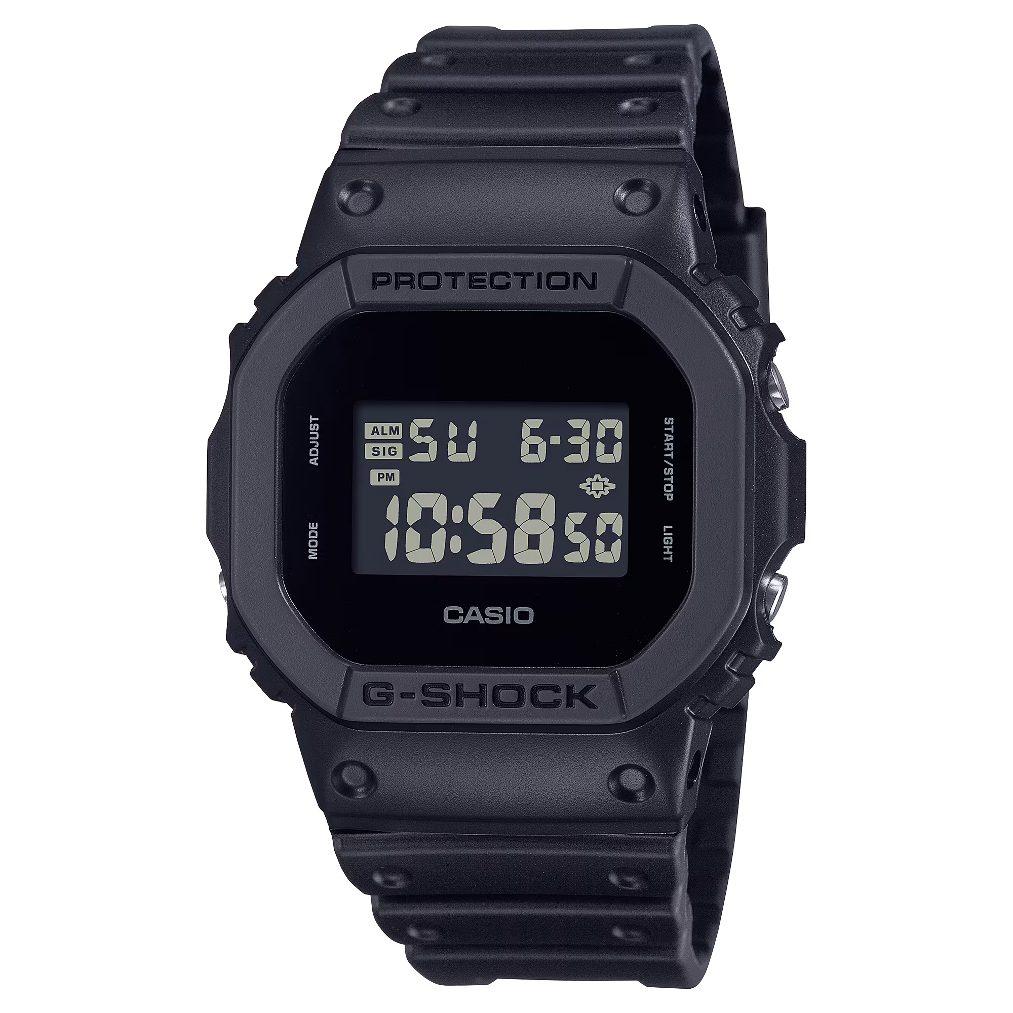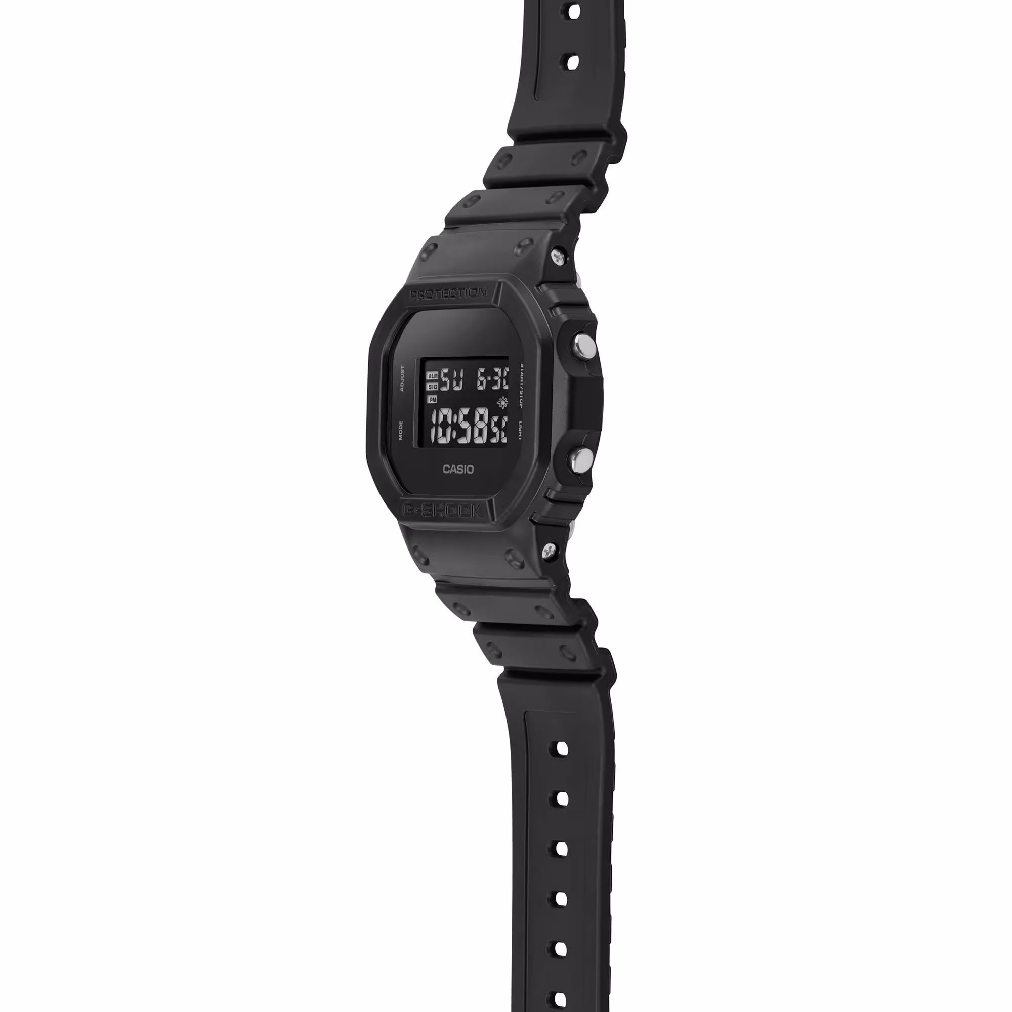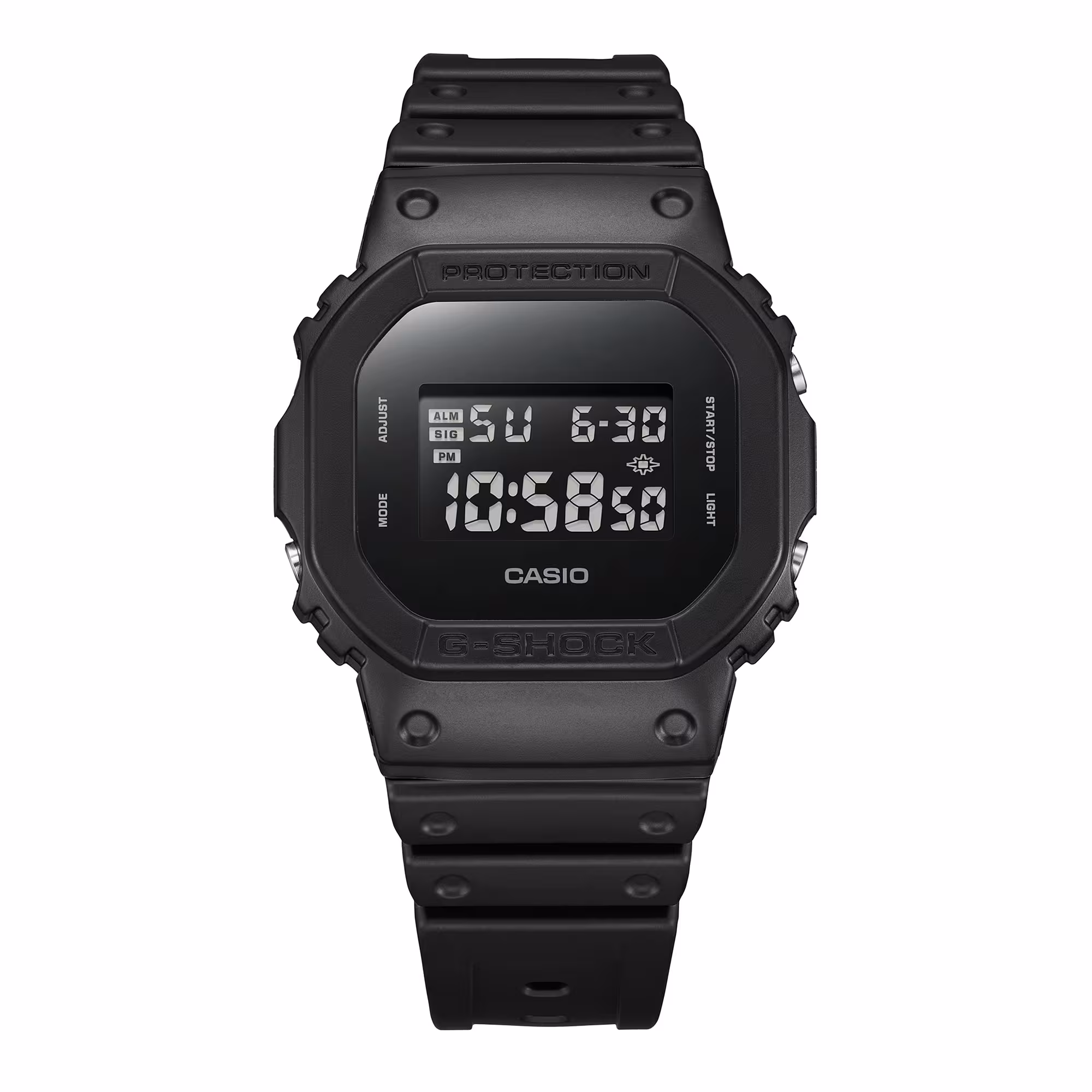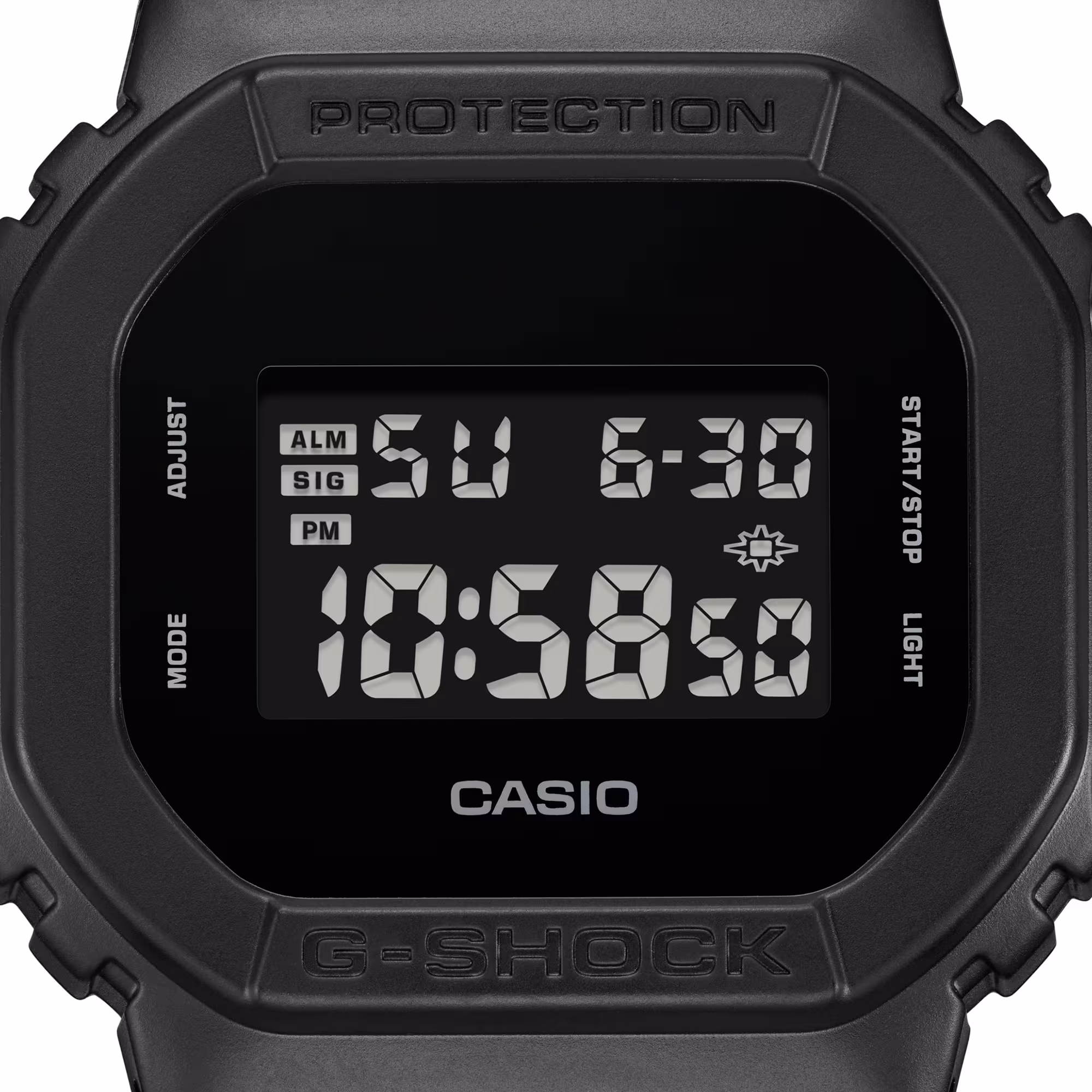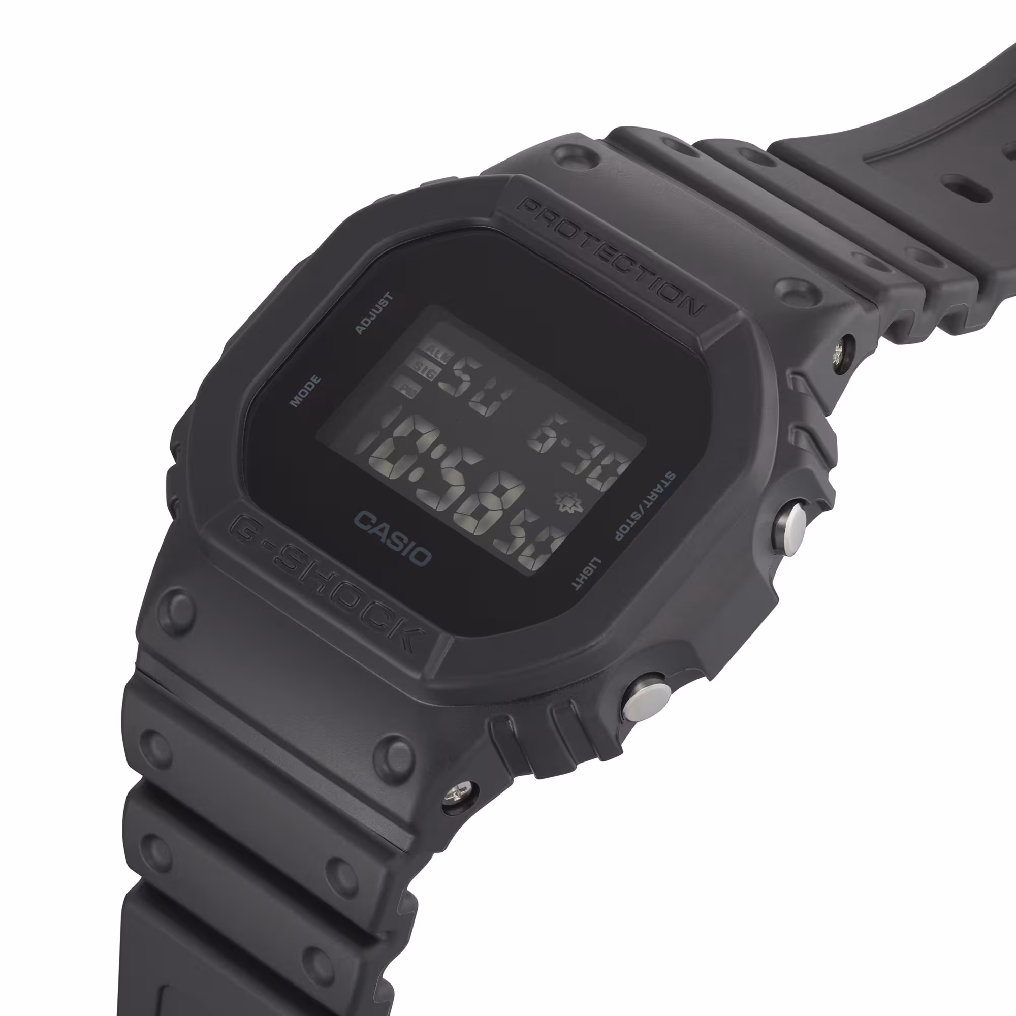 Ez egy fekete-fehér témájú, „Egyszínű” G-Shock modell fekete színben. Az óra teljes egészében fekete, egyszerű textúráját pedig az egyszínű mivolta hangsúlyozza. Az óra testének és szíjának matt színe nemcsak egyszerű színsémát hoz magával, hanem az óra formáját is kiemeli. Jellegzetes, tömör kialakításának köszönhetően ez a modell divatkifejezésként is viselhető.