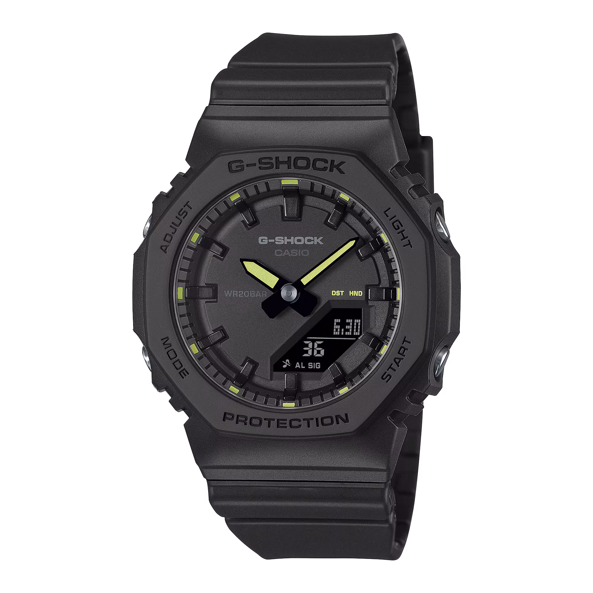 A GMA-P2100SA modellnél a klasszikus feketével kezdjük, majd sportfelszerelések ihlette élénk árnyalatokkal egészítjük ki a kiegészítőket, hogy feltűnő kontrasztot hozzunk létre, amely teljes mértékben sportos stílust kölcsönöz.