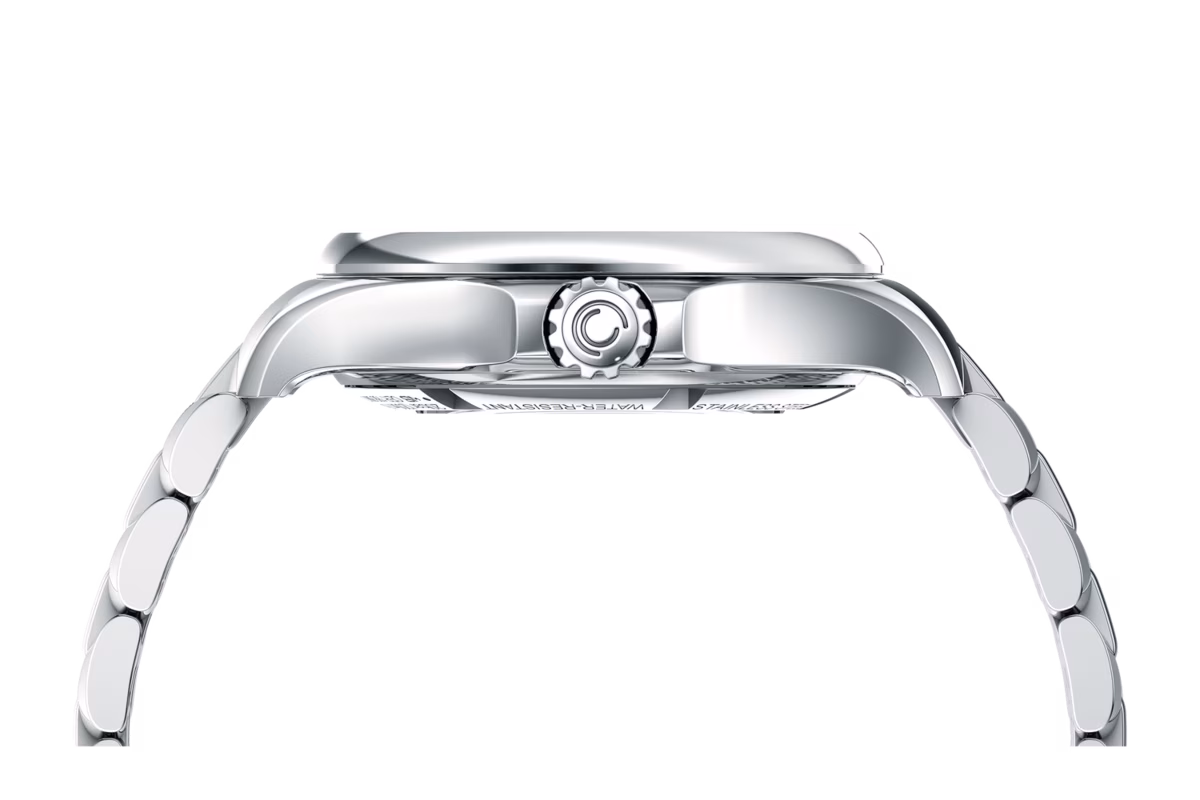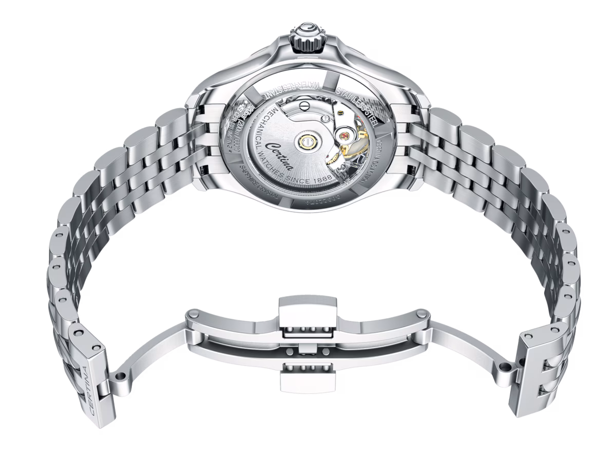Elegáns és nagy teljesítményű, a dinamikus stílusú nőknek készült. Az automata Powermatic 80 szerkezet lenyűgöző, 80 órás járástartalékkal rendelkezik, így nincs szükség a napi felhúzásra. 34,5 mm-es rozsdamentes acél tokban foglal helyet, és kivételes vízállósággal büszkélkedhet, akár 300 méterig. Átlátszó hátlapja a mechanika precizitását mutatja, míg a tükröződésmentes zafírüveg tökéletes leolvashatóságot biztosít. Egy óra, amely a Certina svájci kézműves kidolgozását kifinomult stílussal ötvözi a mindennapi eleganciáért és teljesítményért.
