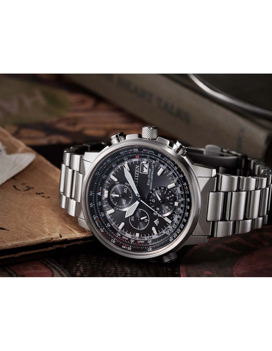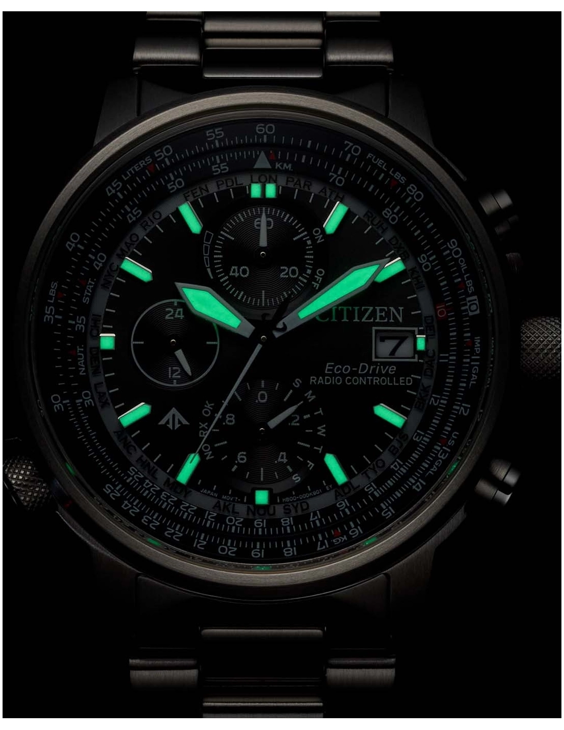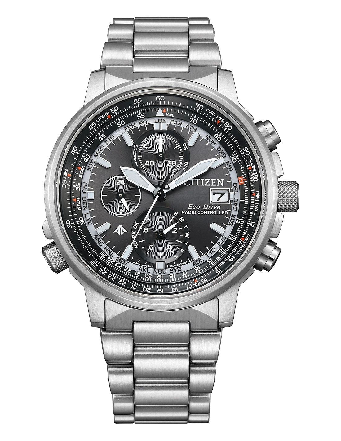 A pilótaórák általában számos funkcióval vannak felszerelve – ezért nagy átmérőjűek. Ezeknek a műszeres időmérőknek az átmérője gyakran 43 mm vagy annál nagyobb. A CITIZEN megszegi ezt a szabályt, és az új PROMASTER SKY RC 41 modellel megmutatja, hogy teljesen lehetséges olyan funkciókat integrálni egy 41 mm-es tokba, mint a 26 helyi idő, a kronográf, a fényerővel működő és rádióvezérelt Eco-Drive szerkezet és a belső logarléc-lünetta az üzemanyag-fogyasztás és az üzemanyagtartály kapacitásának kiszámításához. Ezek a beállítások egy második koronával módosíthatók a 8 órás pozícióban. Belül a saját fejlesztésű H800 kaliber működik, amely képes rádiójeleket venni egy atomóráról, és másodperc pontossággal méri az időt.