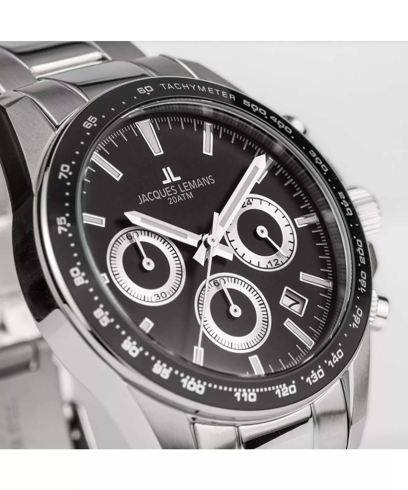A Jacques Lemans Liverpool Chronograph 1-1877E férfi karóra egy funkcionális modell, amely dátumkijelzővel, kronográffal és tachiméterrel van felszerelve. A tok és a szíj ezüstszínű rozsdamentes acélból készült. A fekete számlapot edzett ásványi üveg védi. A 20 ATM vízállóság lehetővé teszi az úszást és a búvárkodást is. A működő modellt kvarcmű hajtja.