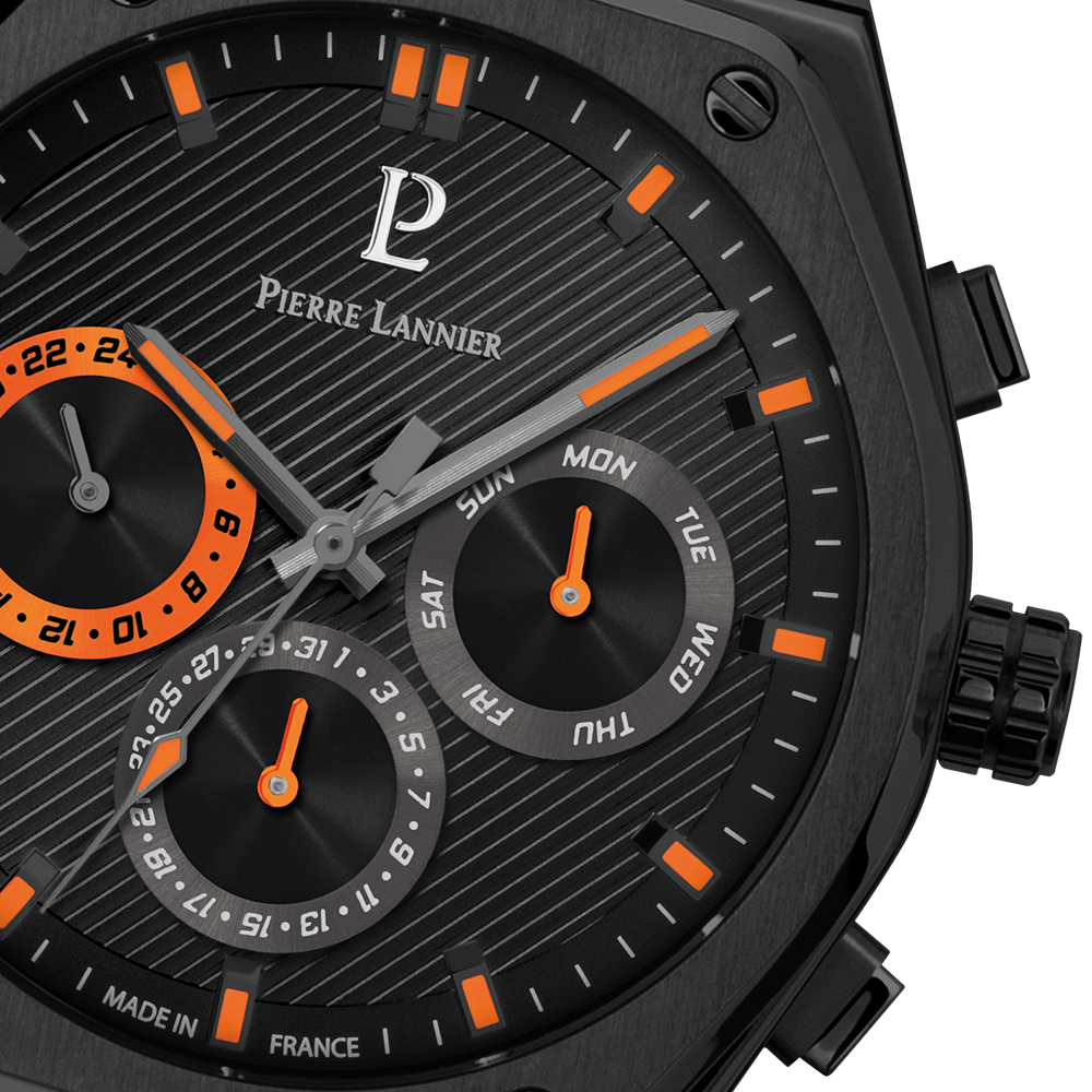 Érezd a teljesítmény izgalmát a Franciaországban készült Copilote 231J439 órával! A pilótafülke ihlette dizájnjával, kettős felületkezelésű fekete számlapjával és kétszínű narancssárga és szürke mutatóival ez az óra a tökéletes választás az izgalomra vágyók számára. Hordó alakú tokja és csavaros lünettája egy csipetnyi robusztusságot kölcsönöz sportos megjelenésének.