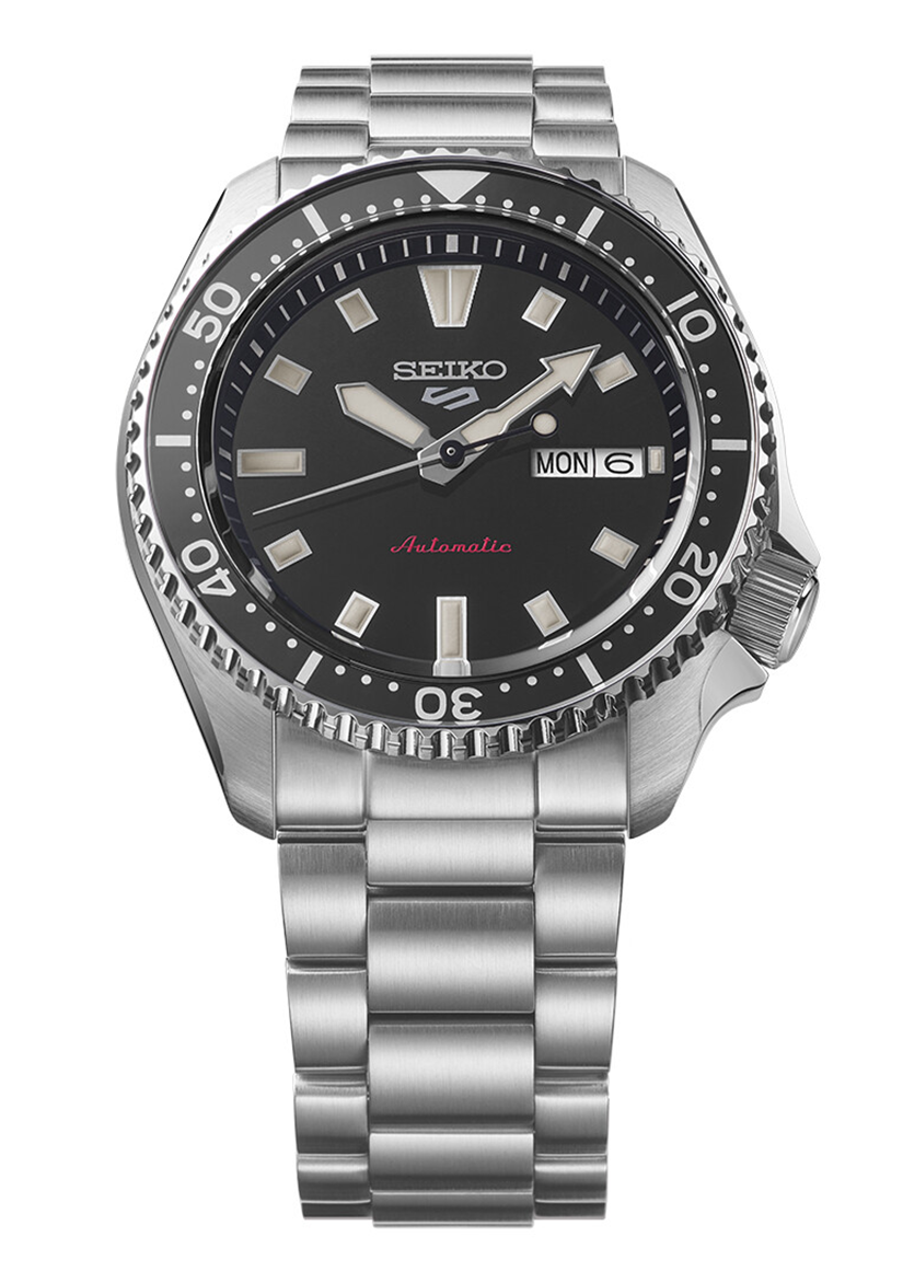 A Seiko 5 Sports 50 éven át folyamatosan magas szintű megbízhatóságot, teljesítményt és értéket képviselt a mechanikus órák szerelmesei számára. Most egy új dizájn és új kollekció létrehozásával újjászületik ez a közkedvelt időmérő. Az új kollekció minden változata nyíl alakú percmutatóval, egyedi indexekkel és egy irányban forgó lünettával rendelkezik. A sorozat minden darabját a Seiko jól bevált és megbízható automata 4R36 kaliberrel alkották meg, amely 24 köves, kézi felhúzóval, 41 órás járástartalékkal rendelkezik. Ez a karóra automata szerkezettel szerelt, amely a kéz mozgásából származó mozgási energiát alakítják át a működéshez szükséges energiává úgy, hogy a szerkezetben található súly körkörös mozgása során a rugó felhúzásra kerül.
