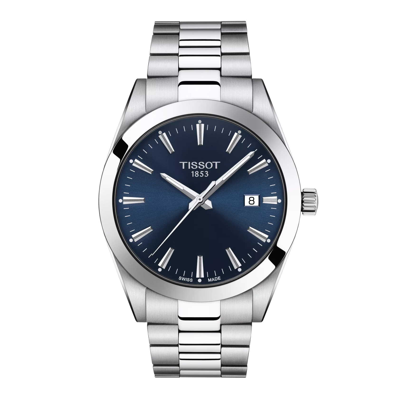 A Tissot Gentleman a tökéletes, mindennapi, stílusos kiegészítő. Ez a klasszikus és elegáns óra 40 mm-es tokátmérőjű, és minden stílushoz tökéletesen illeszkedik. Három számlappal (fekete, kék és ezüst) kapható, mindegyiket polírozott és selyemfényű órajelzések és dátumkijelző ablak díszíti.