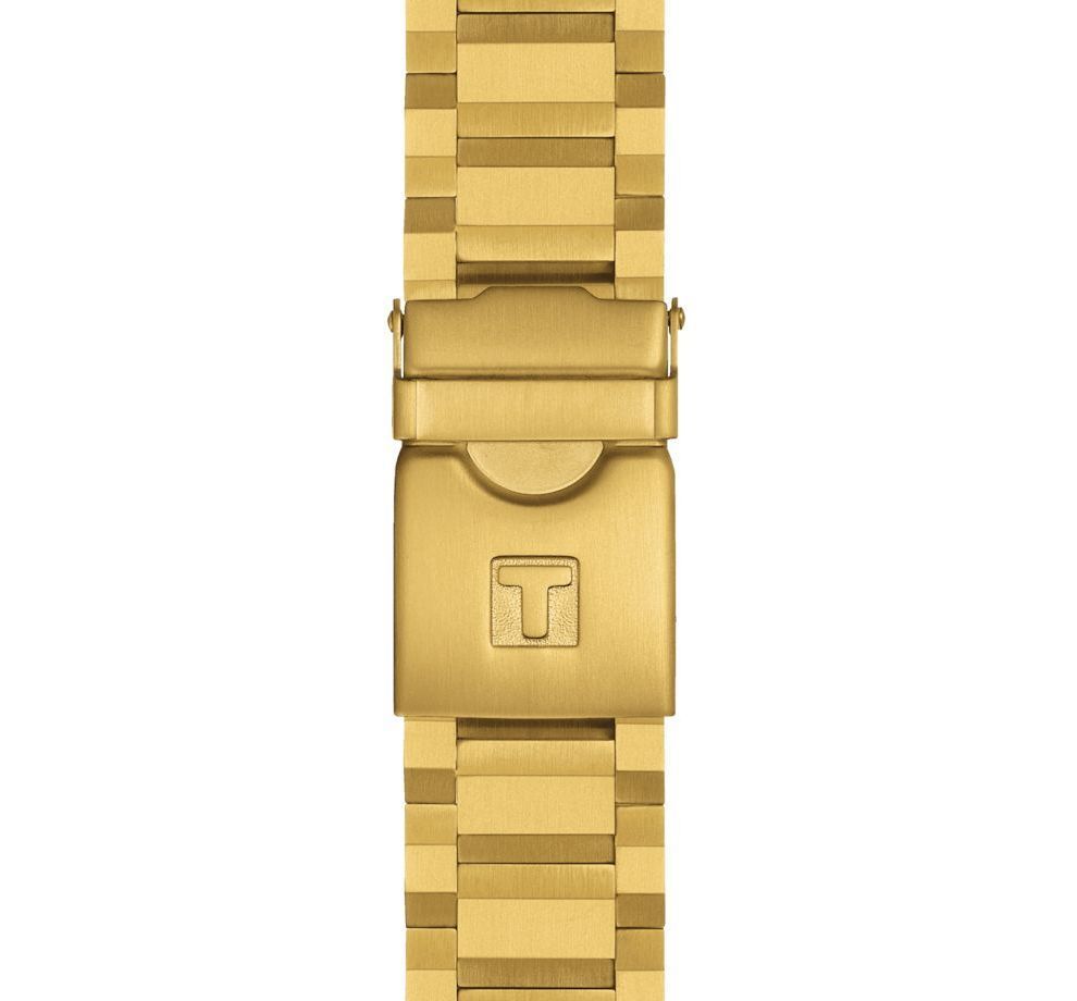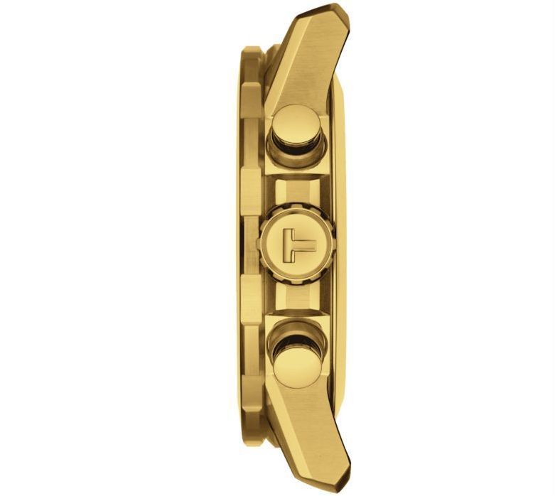 A rózsaarany színű rozsdamentes acél tok 45.5 milliméter, melyet igazán naggyá a hosszú fülei tesznek, amik 54.1 milliméterre nyúlnak ki. A tok formavilága sallangmentes, az óra dinamikus jelleméhez igazodik. A 22 milliméteres rózsaarany bevonatos tömörszemes acél szíja egy igazán jól sikerült, karakteres darab, melynek kétrészes békazár csatja rendelkezik búvárhosszabbítóval is. A koronája jelzett, melyen ott díszeleg a Tissot logója. A nem forgatható lünettáján egy Tachiméter skálát találunk, aminek segítségével a saját sebességünket tudjuk mérni. Például az autópályán haladva a kilométer táblánál elindítjuk a stoppert, majd a következőt elérve megállítjuk azt: a kapott eredményből megkapjuk a két tábla közötti átlagsebességünket.